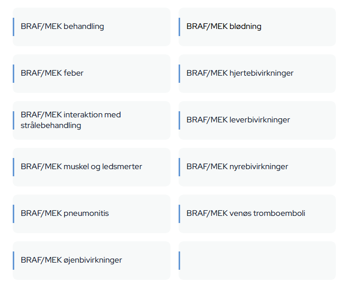Dansk Melanom gruppes onkologi udvalg har gjort et kæmpe stort arbejde med udarbejdelse af nationale behandlingsvejledninger for bivirkninger til BRAF/MEK inhibitorer.